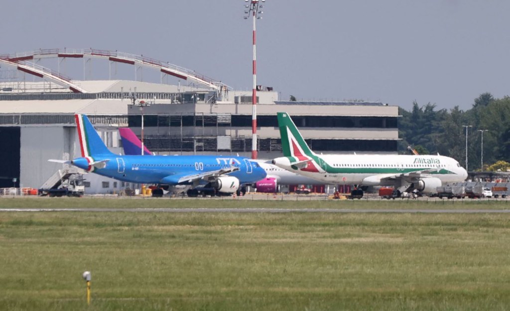 A320s parked in Milan Linate featuring ITA Airways and Alitalia liveries